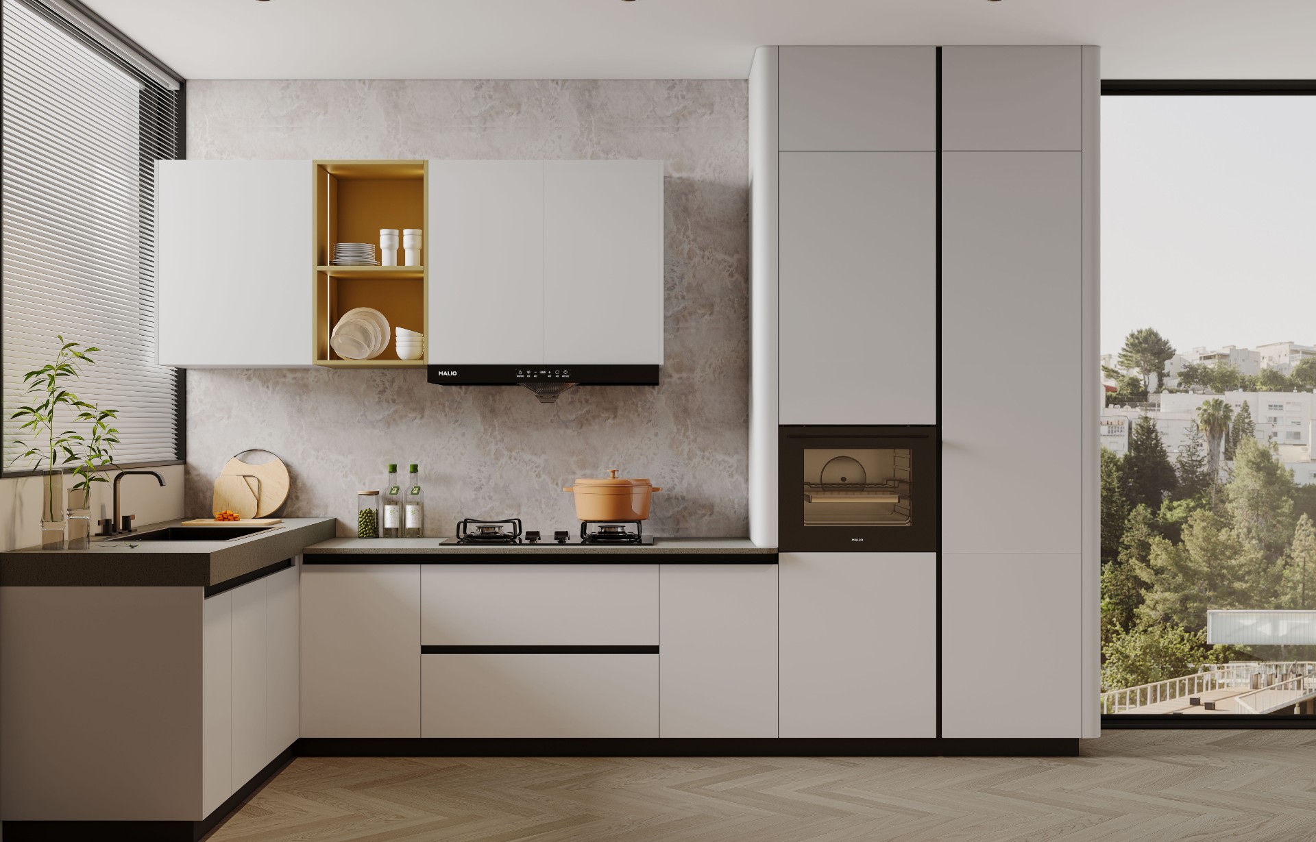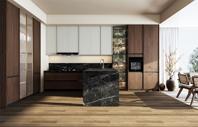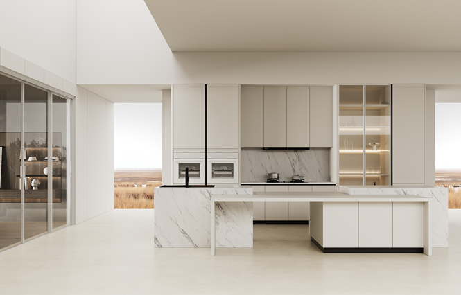 通过必一运动厨柜量体裁柜,定制出适合主厨下厨的烹饪区和洗涤区的舒适高度。